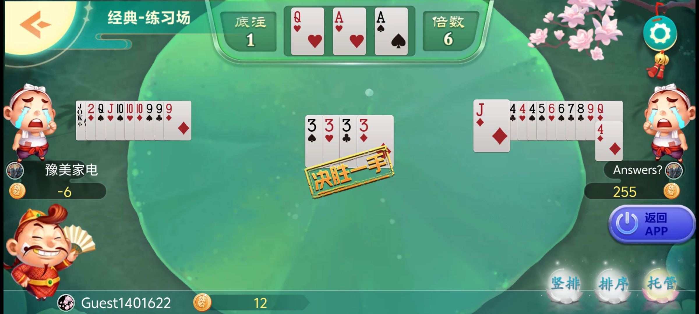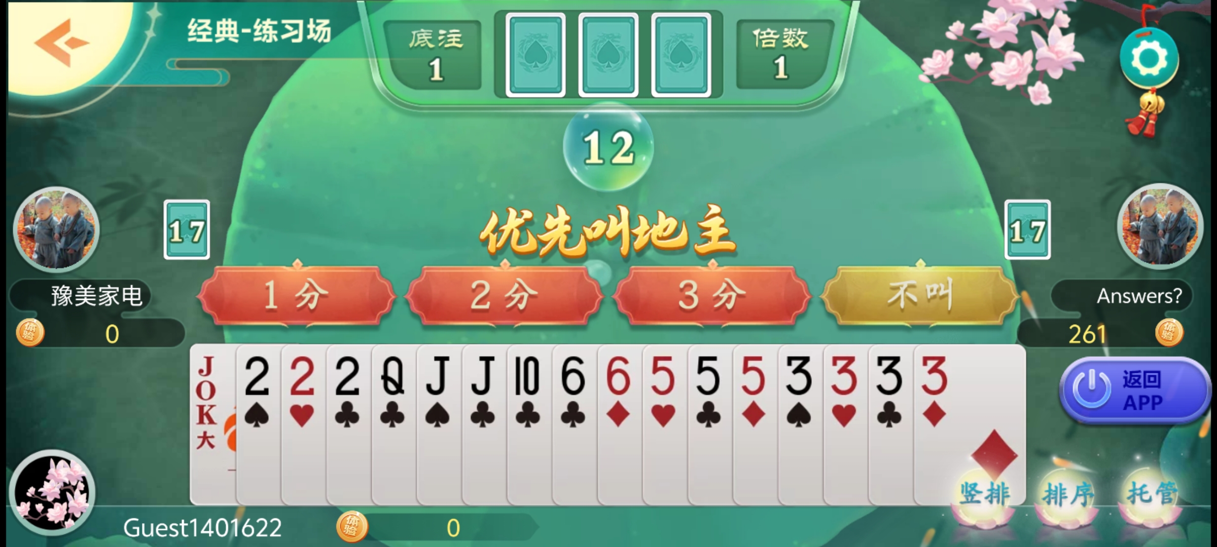 经典纸牌对决,三人成局!叫分抢地主、炸弹连环炸,策略与运气交织。手牌组合、记牌算牌智斗全场,农民配合围剿地主,逆风翻盘刺激拉满,一局十分钟畅享头脑风暴!